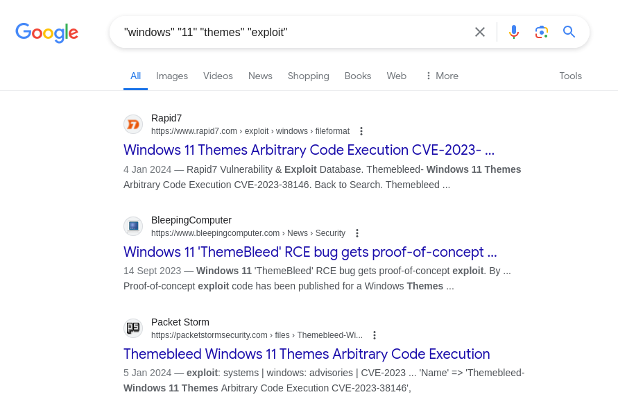We know that we can upload windows 11 theme to the server. Lets see if we can find any vulnerabilities or exploits. A simple google search yields us the following results